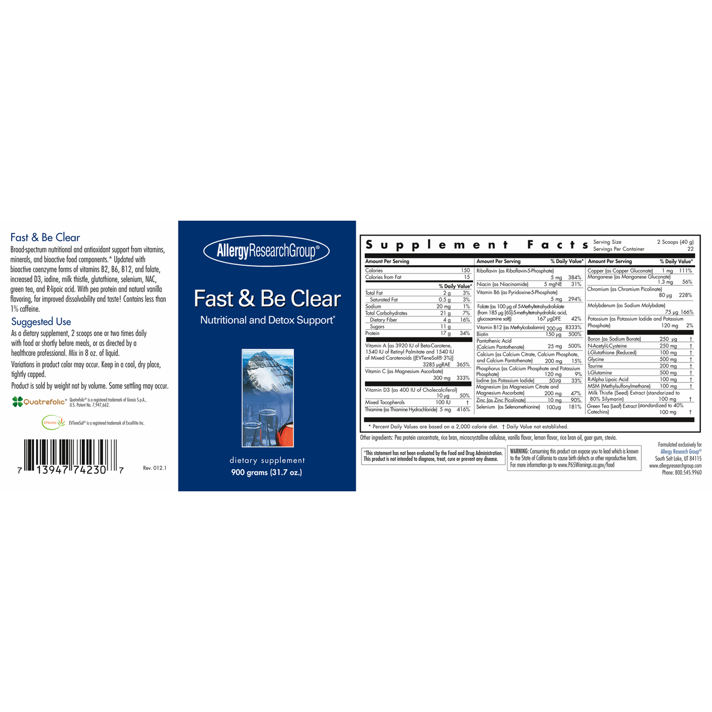 Fast & Be Clear bevat geen tarwe- of melkingrediënten, om interferentie met de ontgiftingsactiviteit te minimaliseren.