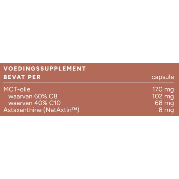 - Bevat astaxanthine – 8 mg per capsule, in een vegan vorm.