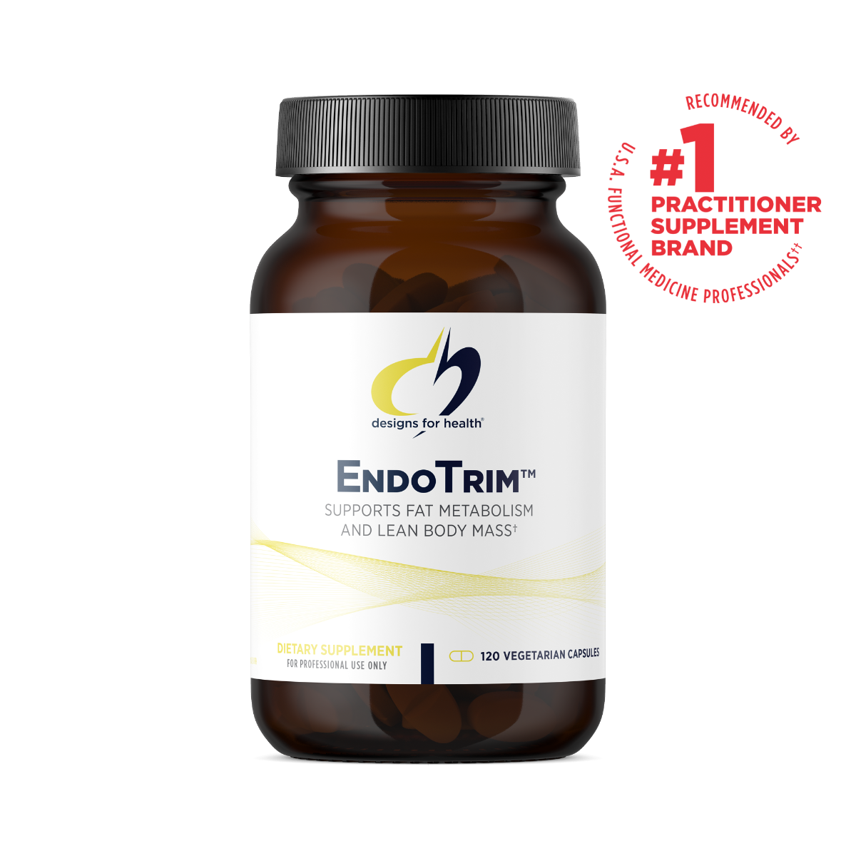 EndoTrim™ van Designs for Health is ontwikkeld voor mensen die hun metabole gezondheid willen ondersteunen en tegelijkertijd hun bloedsuikerspiegel, vetstofwisseling en energieniveau in balans willen houden. Deze formule combineert diverse plantenextracten zoals groene thee, Coleus forskohlii en Panax ginseng met nutriënten zoals chroom, zink, vitamine B5, B6 en C. Daarnaast bevat het L-carnitine, N-acetyl-tyrosine en GABA.