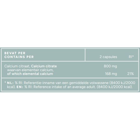 | Calcium (als calciumcitraat) | 168 mg |