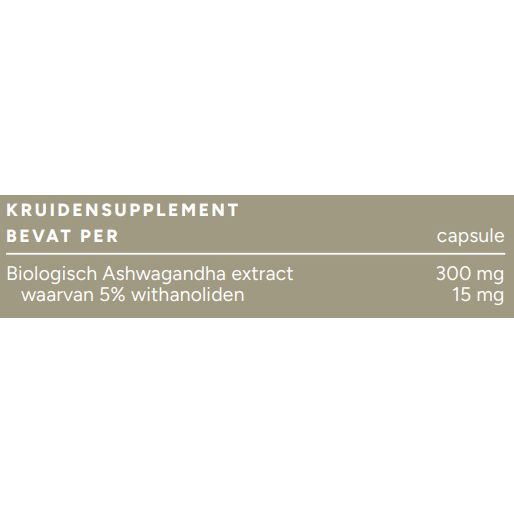 Raadpleeg een arts of therapeut bij zwangerschap, borstvoeding, medicijngebruik of gezondheidsklachten. Raadpleeg vóór gebruik uw arts of apotheker bij een lever- of schildklieraandoening en bij gebruik van schildklierhormonen of antidepressiva. Ashwagandha kan in zeldzame gevallen leverproblemen veroorzaken. Niet gebruiken bij zwangerschap(wens) en borstvoeding. De aanbevolen dosering niet overschrijden.