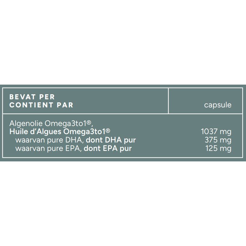 | Algenolie (source of omega-3) | 500 mg |