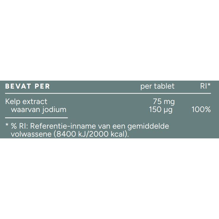 Kelp-Algenextrakt mit Jod 75 mg ist ein Nahrungsergänzungsmittel auf Basis von Kelp (Seetang), das von Natur aus Jod enthält. Dieses Nahrungsergänzungsmittel kann zur Jodaufnahme beitragen und bei Verwendung im Rahmen einer abwechslungsreichen Ernährung und eines gesunden Lebensstils zur Aufrechterhaltung einer normalen Schilddrüsenfunktion und eines allgemeinen Mineralstoffhaushalts beitragen.