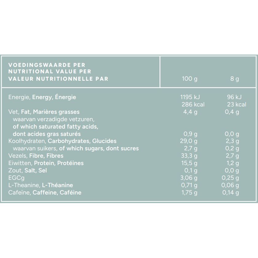 - Reich an natürlichen Aromen – Matcha kombiniert mit Ingwer und Ceylon-Zimt für einen warmen, aromatischen Geschmack.