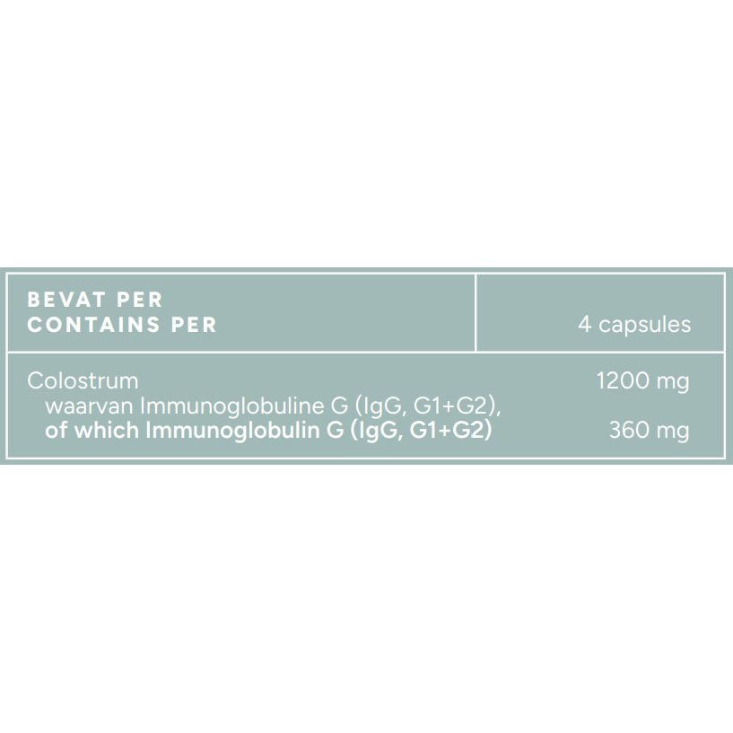 - Reich an Kolostrum mit 30 % IgG – geliefert in leicht einzunehmenden Kapseln.