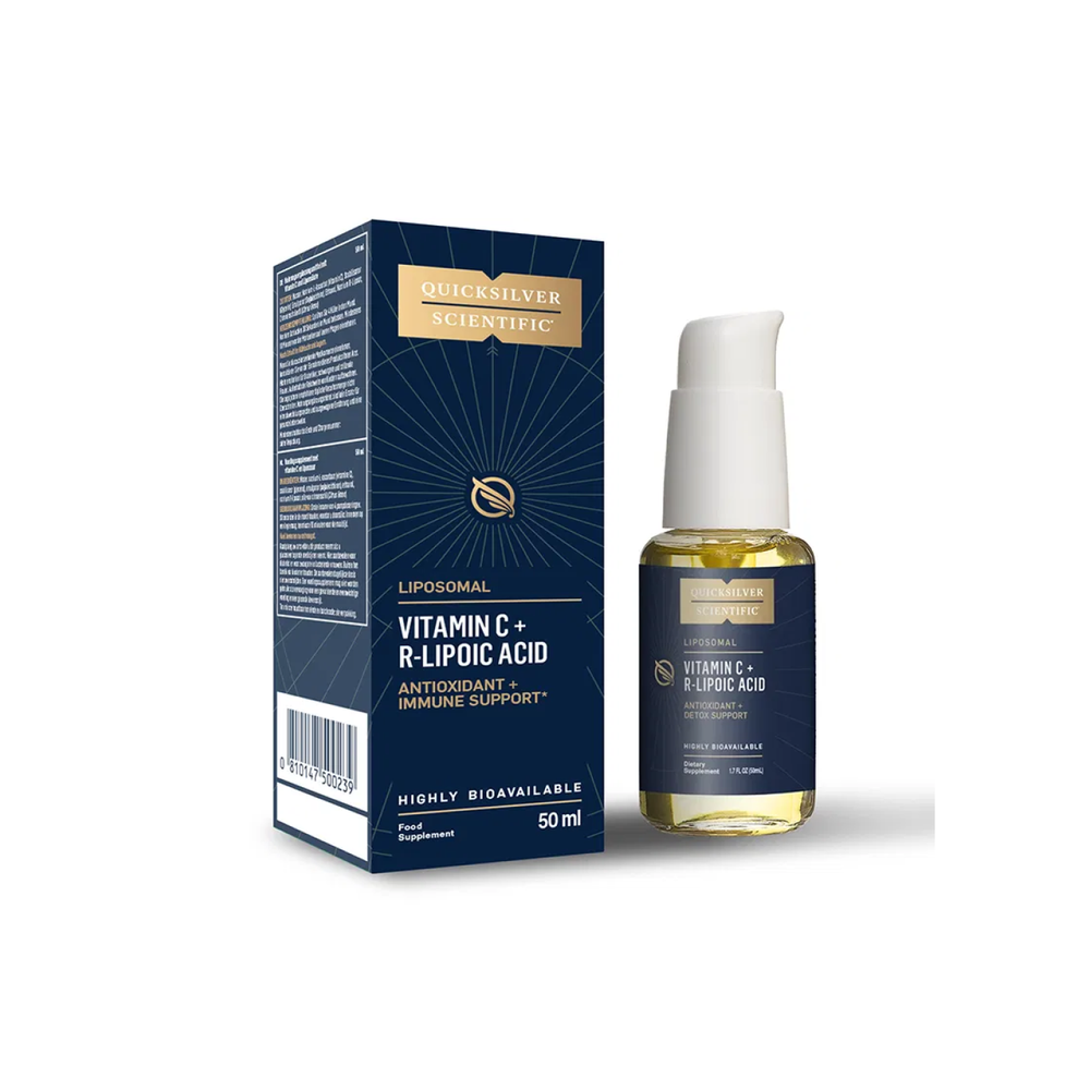 Quicksilver Scientific Liposomal Vitamin C mit R-Liponsäure (EU) kombiniert zwei starke Antioxidantien – Vitamin C und R-Liponsäure – in einer fortschrittlichen liposomalen Flüssigformel.