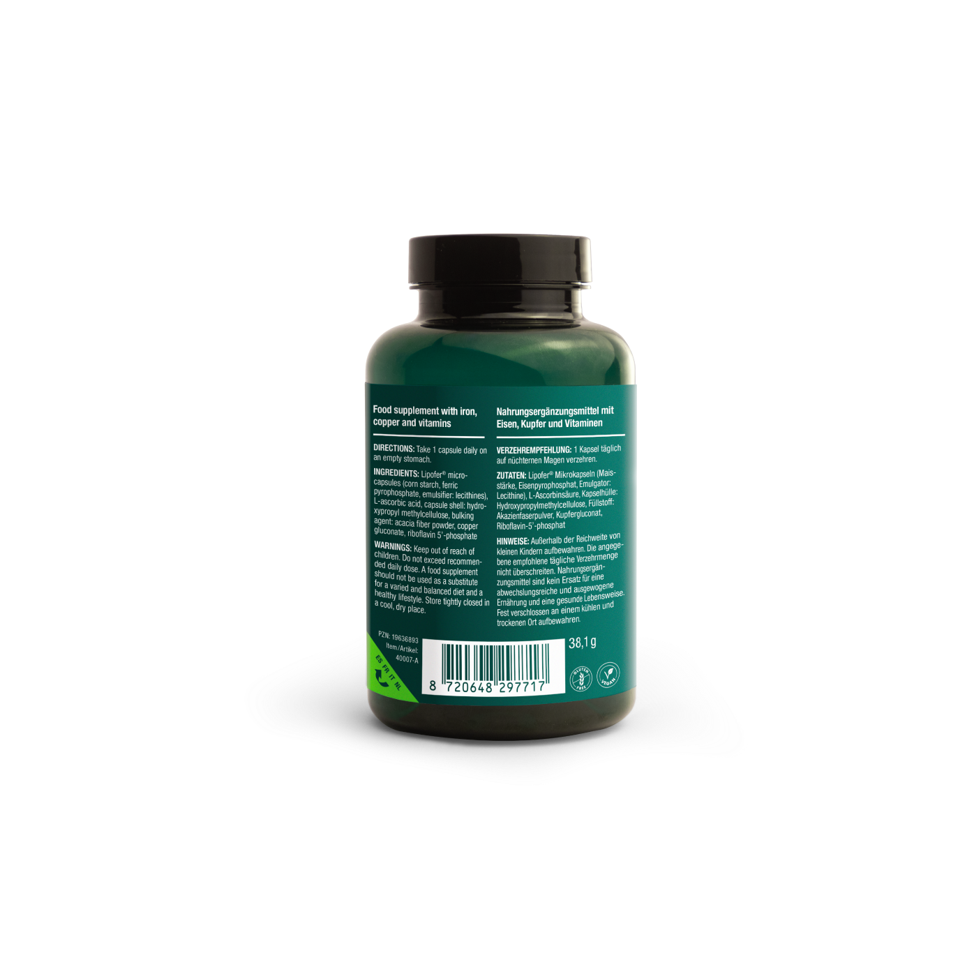 Lipofer® Eisenkomplex ist ein fortschrittliches Eisenpräparat mit mikroverkapseltem Eisenpyrophosphat, ergänzt mit Vitamin C, Vitamin B2 und Kupfer. Dank der Mikroverkapselung (Lipofer®-Technologie) wird das Eisen gut vom Körper aufgenommen und ist magenschonend.
