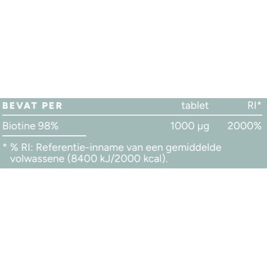 Biotin (vitamin B8) is a dietary supplement that can contribute to normal hair growth and help maintain healthy skin and mucous membranes. This product contains 60 tablets with a dosage of 1000 µg biotin per tablet. A dietary supplement is not a substitute for a varied diet and a healthy lifestyle.