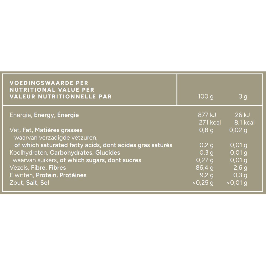 Composition per 1 portion (approx. 3 g)