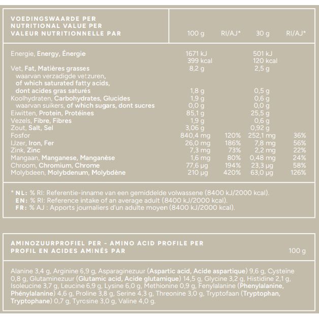 | Per serving (30 g) – Protein | approx. 25.8 g |