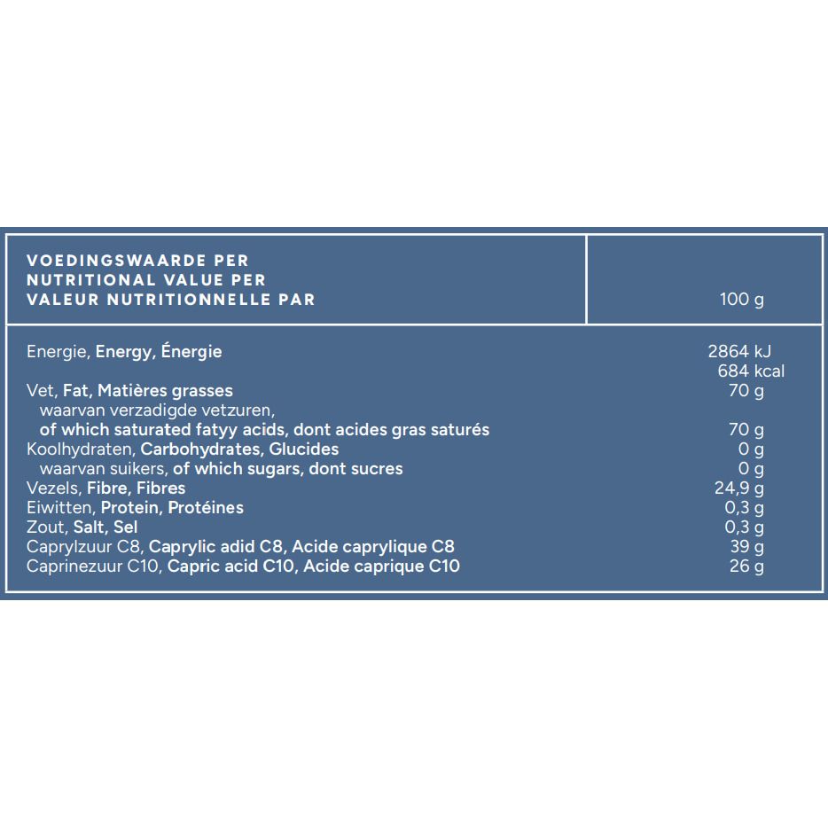 Vegan MCT Powder - 330g is a plant-based MCT powder with a slightly sweet, milky flavor. This product can help you add easy-to-use medium-chain triglycerides to your diet and is ideal as a replacement for milk (powder) in coffee or as an addition to smoothies. Store in a cool, dry place, and tightly closed. Keep out of reach of children. Best before end and batch number: see bottom.